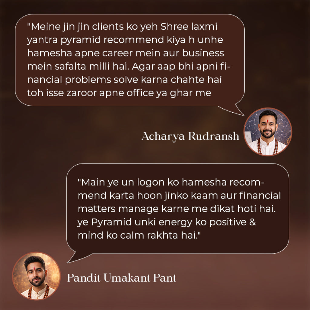 This Lakshmi Yantra Pyramid is a powerful spiritual tool designed to attract wealth, prosperity, and abundance. The sacred Lakshmi Yantra is placed within a pyramid form, known for amplifying and directing positive energy. The combination of geometric precision and divine symbolism makes it ideal for enhancing financial stability and overall harmony. Compact yet effective, this pyramid works continuously to balance energies, invite prosperity, and create a positive flow in your surroundings.
