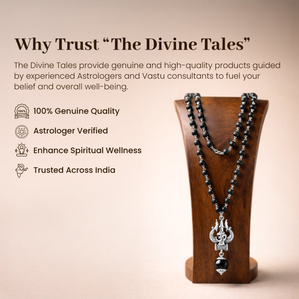 Invoke strong spiritual protection with the Karungali Cap Mala with Trishul and Karungali Bead (Big) from The Divine Tales. Crafted using 54 original Karungali beads (7 mm) and a comfortable 38 cm length, this sacred Karungali mala is ideal for daily wear and spiritual rituals. The bold Trishul locket (5 × 4 cm) represents Lord Shiva’s power, courage, and the destruction of negative energies. Karungali beads are known for their grounding effect, helping to calm the mind and enhance spiritual focus. Perfect for meditation, japa, pooja, and spiritual healing, this Shiva Trishul mala also makes a powerful divine gift.